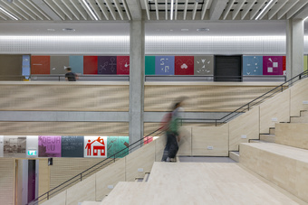 ist ein Kunst am Bau Projekt, das die Frage nach dem Eigentum um die Frage der Ressourcen, des Erhaltens und Wiedergebrauchs erweitert. Im Zuge des Neubaus und Umzugs der Gustav-Heinemann Oberschule in Berlin-Marienfelde (2022-2025) arbeitete das Alles Allen Team gemeinsam mit den Schüler*innen an der Frage, was Klimagerechtigkeit bedeutet, welche Rolle der eigene Ressourcenverbrauch im Alltag spielt, was sich wie verwerten oder weiterbenutzen ließe, welche Fotos, Zeichnungen und Geschichten sich recyclen lassen. In enger Kollaboration der Mitkunstzentrale und dem Haus der Materialisierung – einem Produktionsort für klimaschonende Ressourcennutzung in Berlin – wurden gebrauchte Tischler-, Hartfaser- und Alu-Platten gesammelt und so aufbereitet, dass sie mit Fräsungen, Sieb- und Digitaldrucken weiterbearbeitet werden konnten. Aus diesen Materialien, Bildern und Geschichten entstanden zwei Bilderfriese, die das Foyer der neuen Schule rahmen.
